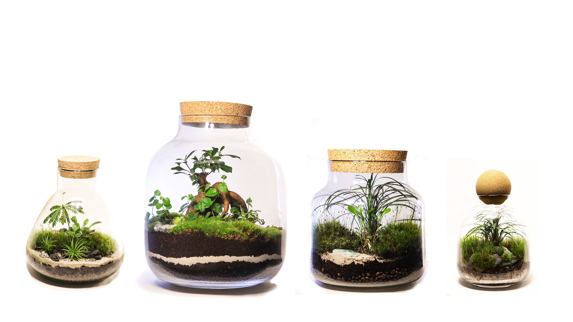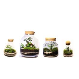 - każdy słoik zawiera starannie dobrane rośliny, które tworzą unikalny, miniaturowy ekosystem